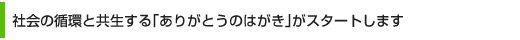 | あなたの「ありがとう」が社会の中で循環することで、社会はより明るくなっていきます。同時に、地球環境が円滑に循環することで、あなたの「ありがとう」がさらに輝いていきます。 |
